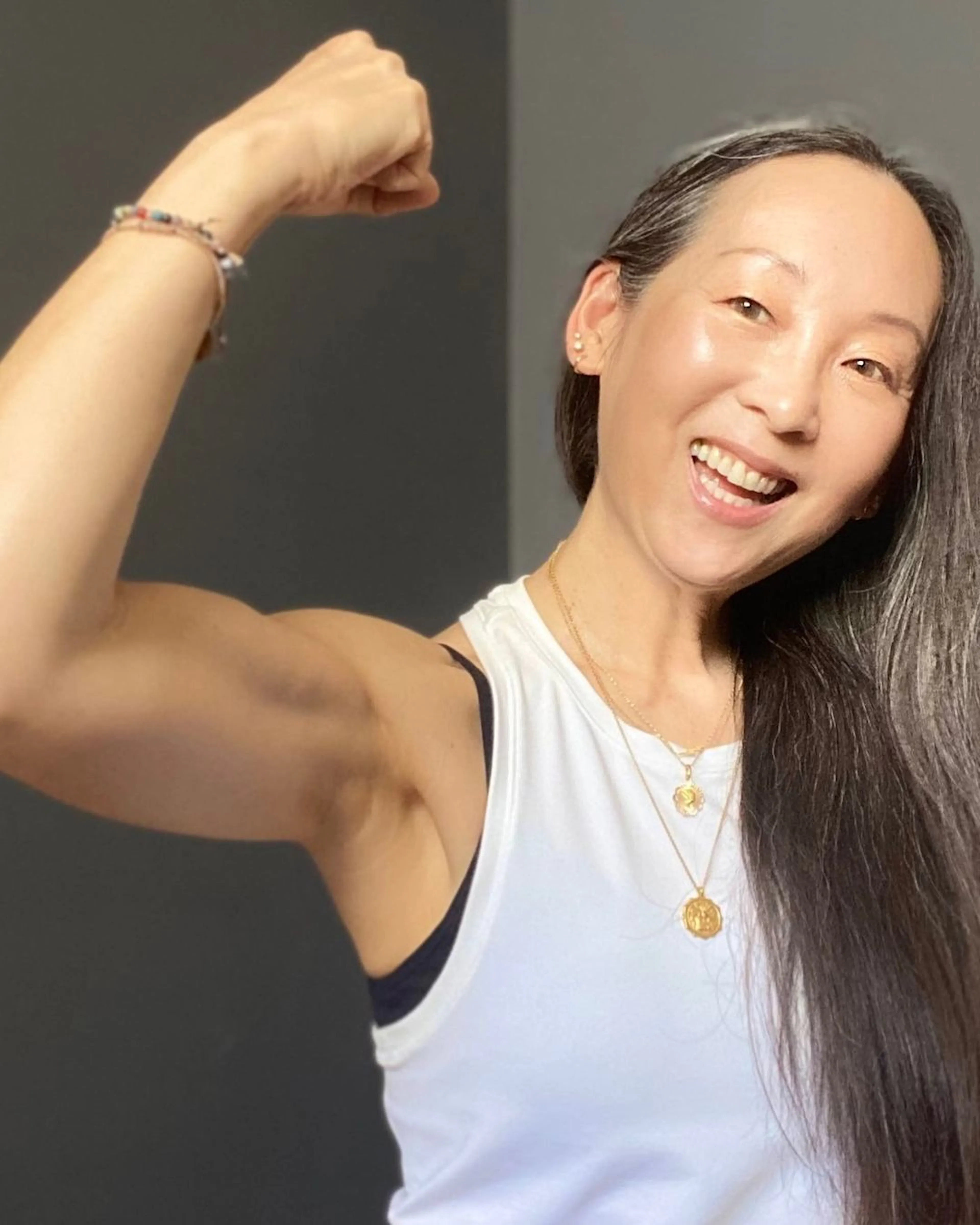 Mimi’s turning point came when her mother died not long after and, in a bid to deal with her middle-aged nadir, she turned to the internet. “I didn’t love the resources I found because they were either overly positive and unrealistic, or pushed the anti-ageing narrative which makes women feel like they’re broken and need fixing.” Taking matters into her own hands, she went on to launch a blog to share what she had learnt about ageing and ageism and the rest, as they say, his history. She now boasts more than 114k followers on her Instagram page @heymiddleage, where she inspires middle agers to move their bodies in a number of exciting and new ways. “There isn’t an invisible line you cross when you suddenly can’t do what you want because of age,” she adds. “You want to do cartwheels, wear shorts or start a business? Age has no relevance.”
